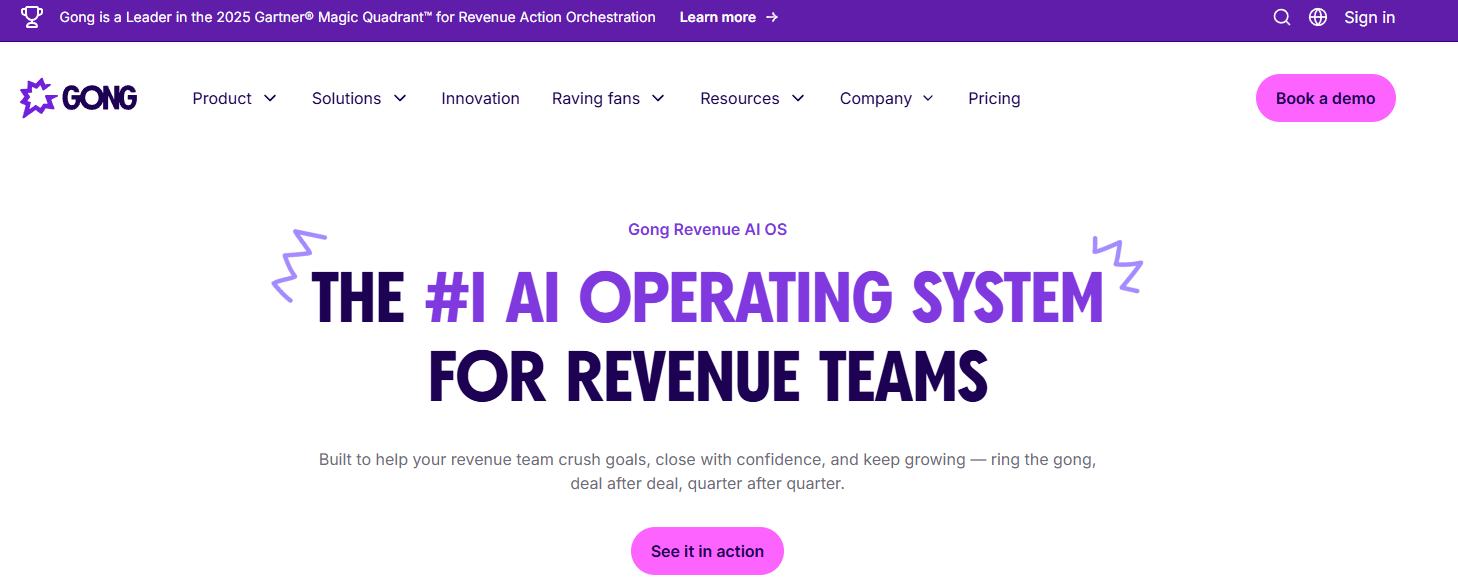 Gong analyzes sales conversations across calls, emails, and meetings to provide revenue intelligence. The platform identifies patterns that lead to closed deals and surfaces coaching opportunities.