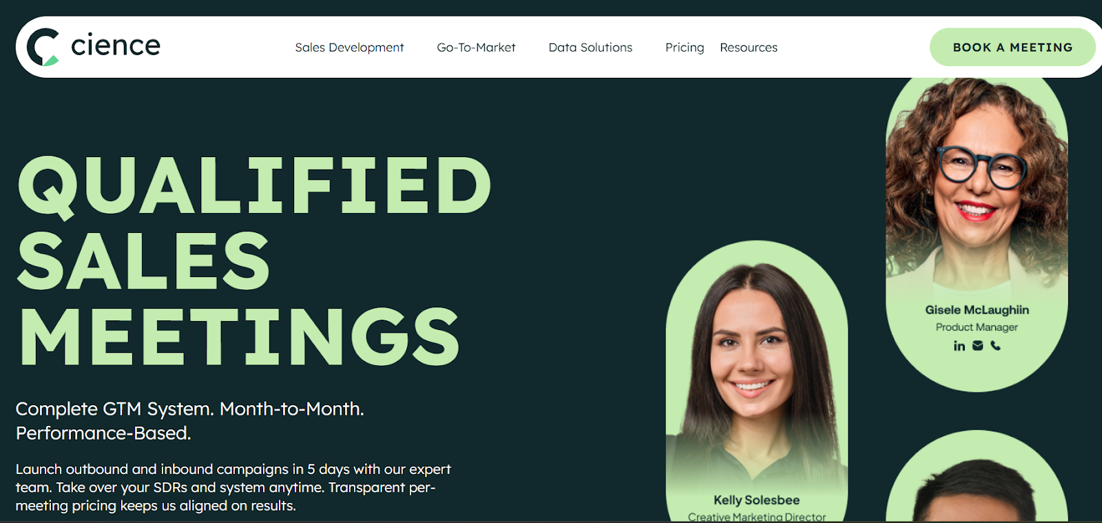 CIENCE combines outbound SDR execution with structured data management and campaign tracking. Their model integrates prospect research, sequence design, and performance reporting into a single system.