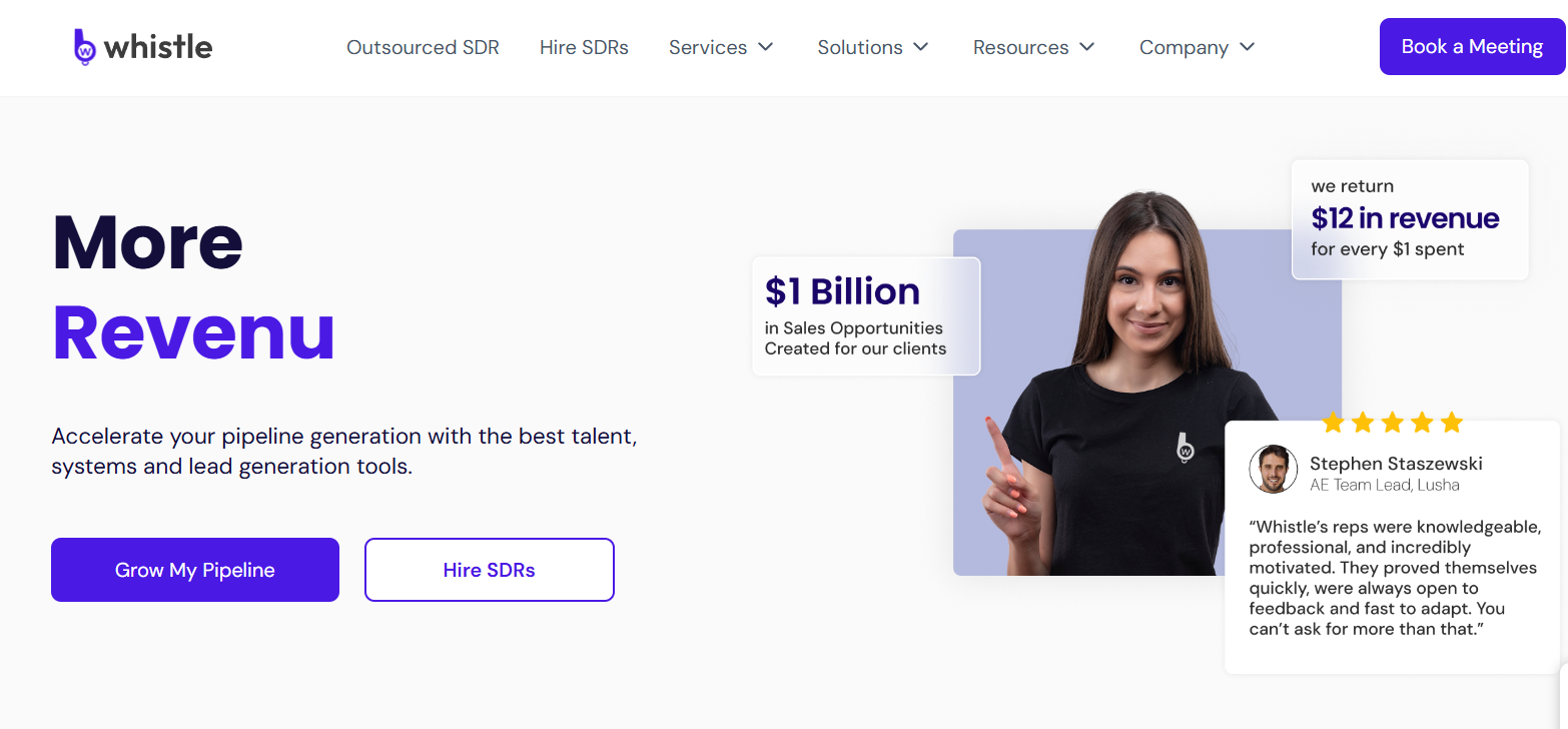 Whistle is best for companies that want their SDR function to improve over time rather than operate as a short-term appointment-setting resource.