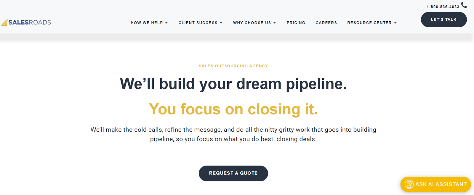 The agency supports inside sales programs where call quality and professionalism are critical. SalesRoads often collaborates closely with clients to refine call scripts and qualification criteria.