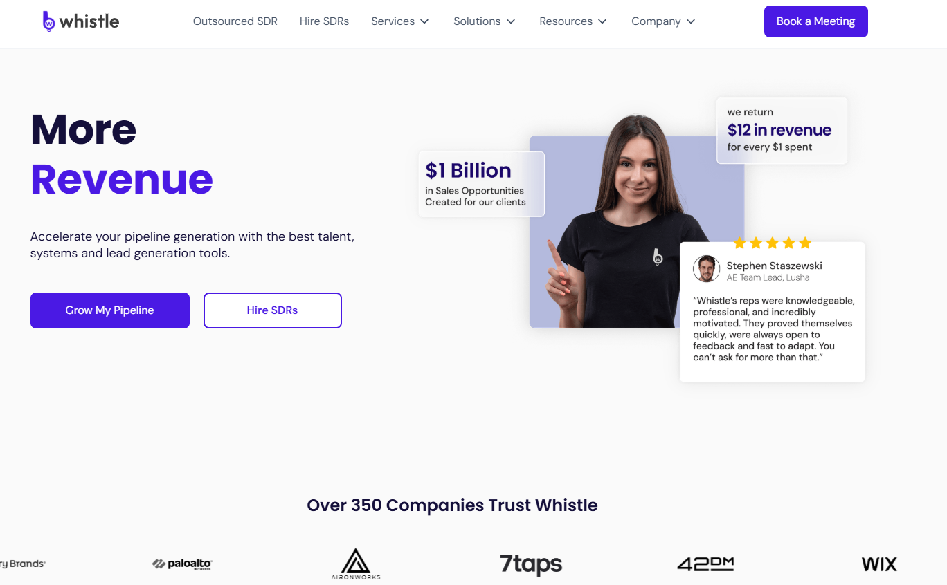 Whistle works with both outsourced and internal SDR teams to design sustainable outreach systems. Their emphasis on skills development and knowledge transfer makes them ideal for companies building their first SDR team, scaling an existing one, or working with outsourced SDRs who need stronger messaging discipline.