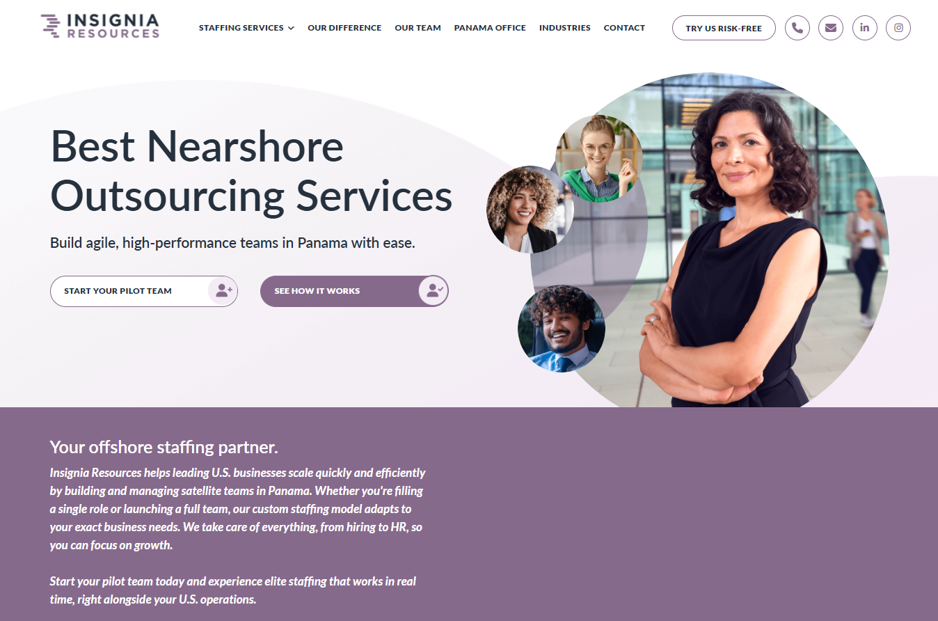 Insignia delivers fully managed satellite SDR teams based in Panama City with direct U.S. management oversight. Their model provides 40-60% cost savings compared to domestic hiring while maintaining quality through embedded SDRs who operate within your tech stack and brand voice.